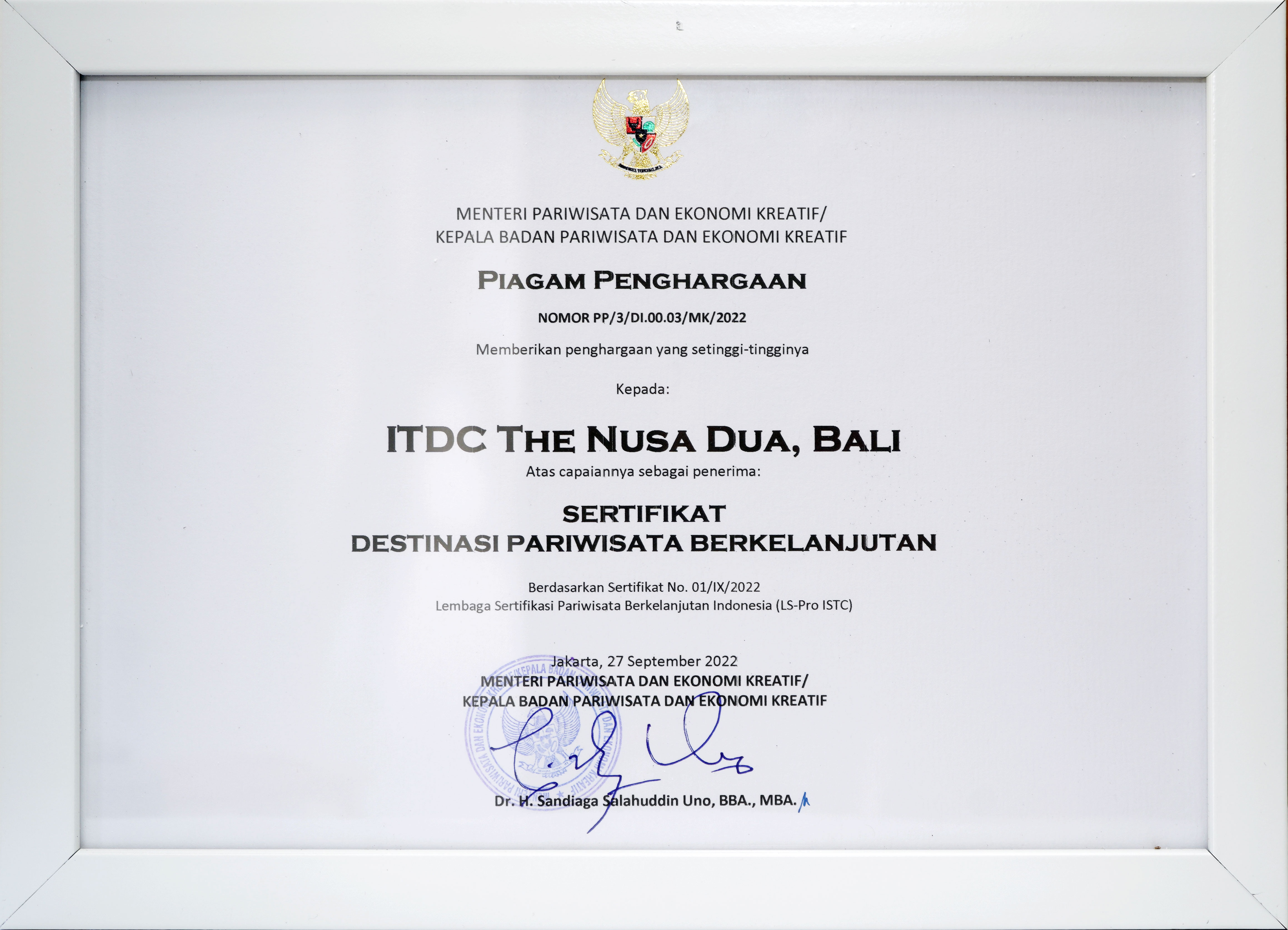 The Nusa Dua area is equipped with international-standard infrastructure, accommodation, and meeting facilities, making the area host to various official international events such as APEC 2013, Bali Democratic Forum, Miss World 2013, and IMF-World Bank Group Annual Meetings 2018 and G20 Presidency in 2022.