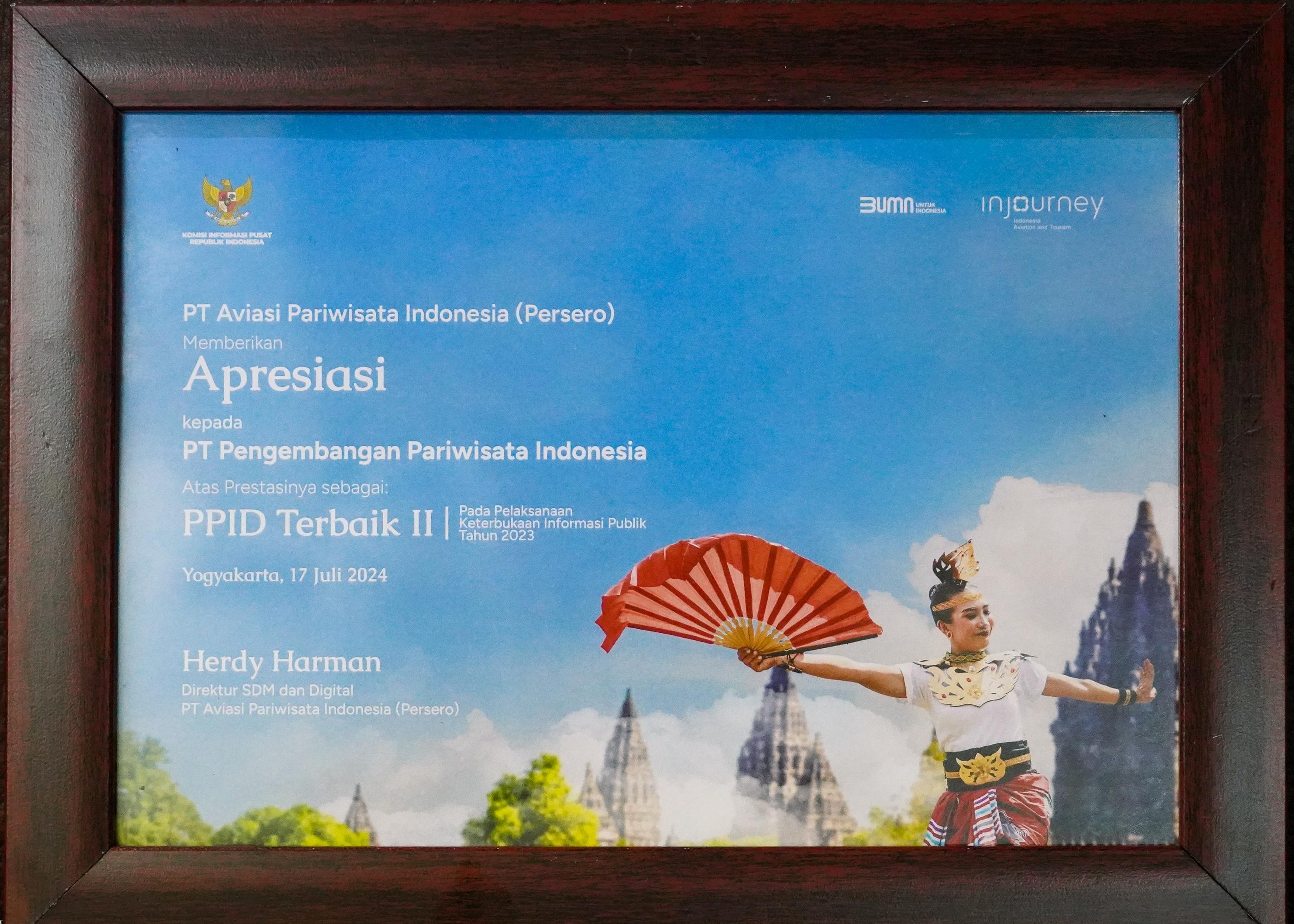 PT Pengembangan Pariwisata Indonesia or Indonesia Tourism Development Corporation, has rebranded as InJourney Tourism Development Corporation. As part of PT Aviasi Pariwisata Indonesia (Persero) or InJourney, in accordance with Government Regulation of the Republic of Indonesia Number 72 of 2021 and Government Regulation of the Republic of Indonesia Number 104 of 2021. InJourney is present as a holding ecosystem of State-Owned Enterprises in the aviation and tourism sectors in Indonesia, committed to bringing Indonesia's hospitality and cultural diversity to the world, encouraging the revival of the tourism sector, and orchestrating collaboration and integration in the tourism industry.