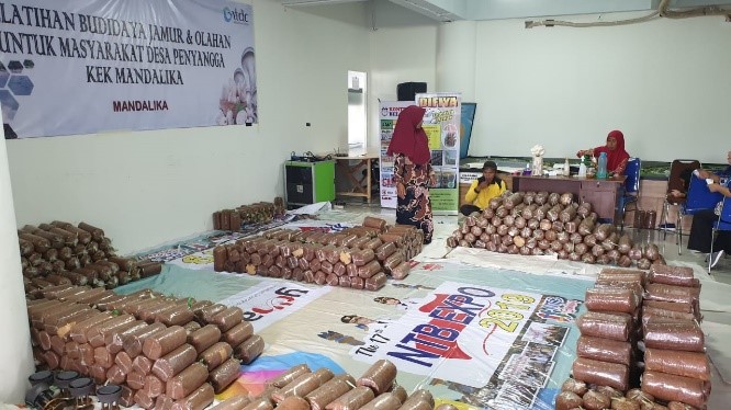 Pelatihan budidaya jamur tiram dan olahan untuk masyarakat desa penyangga KEK Mandalika dilaksanakan pada hari Rabu-Jumat tanggal 11 -13 Januari 2020 di Kantor ITDC Mandalika. Total peserta yang mengikuti pelatihan ini adalah sekitar 48 orang pria dan wanita baik kalangan pemuda maupun orang tua dari 6 desa penyangga KEK Mandalika. Tutor untuk pelatihan tata rias ini adalah pengusaha UKM yang ada di Batu Layar, Lombok Barat yaitu Bapak Adi dan Ibu Ana pemilik UKM Difiya Jamur.Rangkaian pelatihan budidaya jamur tiram dan olahan ini dimulai dengan materi teori pengenalan jamur dan jenisnya serta cara budidaya yang baik dan benar, pemeliharaan dan cara panen jamur, serta materi mengenai cara pengolahan dan pemasaran hasil olahan jamur. Setelah seluruh teori mengenai budidaya jamur diberikan, barulah para peserta dibagi kelompok per desa dan diminta untuk memulai praktek untuk pembuatan baglog bibit jamur yang akan digunakan untuk budidaya jamur tiram. Setiap desa membuat sekitar 100 baglog bibit jamur untuk dirawat dan harapannya hasil panen dari jamur tiram tersebut dapat menjadi tambahan sumber penghasilan masyarakat di masing-masing-masing desa penyangga.Para peserta pelatihan juga diajarkan mengenai cara mengolah jamur tiram menjadi beberapa masakan olahan jamur seperti sate jamur, sambal jamur dan jamur tiram krispi. Hal ini nantinya diharapkan bisa menjadi daya tarik bagi usaha budidaya jamur yang dijalankan oleh masing-masing desa nantinya. Para peserta juga diajarkan simulasi pasar dalam memasarkan produk jamur tiram olahannya dengan berjualan di sekitar wilayah KEK Mandalika.Pasca pelatihan para peserta juga mendapatkan pendampingan hingga lebih dari 1 bulan dari para tutor untuk mengetahui perkembangan bibit-bibit jamur yang sudah dibuat dan disusun di masing-masing desa. Usai pendampingan paling tidak masing-masing desa sudah bisa panen hasil jamur tiram. Setelah rangkaian kegiatan selesai, saat ini para peserta pelatihan budidaya jamur tiram dari beberapa desa sudah sering menerima permintaan untuk suplai jamur tiram dari restoran-restoran maupun hotel yang ada di desa penyangga KEK Mandalika. Para peserta bahkan sempat mengajarkan warga lain yang tidak mengikuti pelatihan di masing-masing desa peserta. Hal inilah yang menjadi harapan ITDC kepada para peserta yaitu agar dapat meningkatkan pendapatan pasca pelatihan dilaksanakan dan dapat menyebarkan ilmu yang didapat kepada warga sekitar. Inilah yang bisa menjadi pemicu peningkatan taraf kehidupan masyarakat di desa penyangga KEK Mandalika. (pkbl/ sagung)