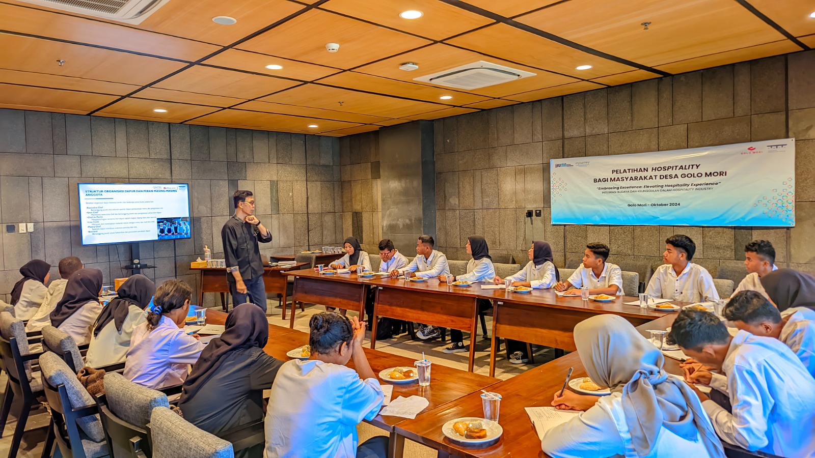 The Golo Mori, 11 Oktober 2024 – PT Pengembangan Pariwisata Indonesia atau ITDC, melalui program Tanggung Jawab Sosial dan Lingkungan (TJSL) menyelenggarakan pelatihan hospitality batch I dengan tema "Embracing Excellence: Elevating Hospitality Experience – Integrasi Budaya dan Keunggulan dalam Hospitality” di SMK Muhammadiyah Golo Mori, Kabupaten Manggarai Barat, Nusa Tenggara Timur (NTT). Pelatihan ini berlangsung dari tanggal 7-11 Oktober 2024 dan diikuti oleh 40 peserta yang terdiri dari warga Desa Golo Mori dan siswa SMK Muhammadiyah Golo Mori.