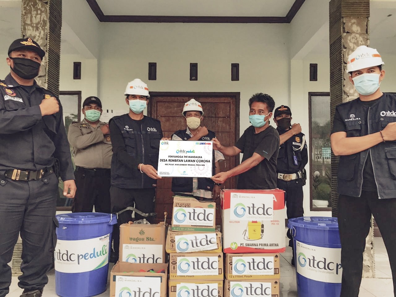 THE MANDALIKA, 13 APRIL 2020 – PT Pengembangan Pariwisata Indonesia (Persero)/ Indonesia Tourism Development Corporation (ITDC), BUMN pengembang dan pengelola destinasi pariwisata The Nusa Dua, Bali dan The Mandalika, NTB, menggelar kembali pemberian bantuan dan disinfeksi desa Penyangga The Mandalika pada Minggu (12/4) dan Senin (13/4). Bantuan ini merupakan bagian dari rangkaian kegiatan ITDC Lawan Corona yang merupakan Program Kemitraan dan Bina Lingkungan (PKBL) dalam mendukung pencegahan peyebaran virus Corona atau COVID-19 di lingkungan masyarakat sekitar kawasan.