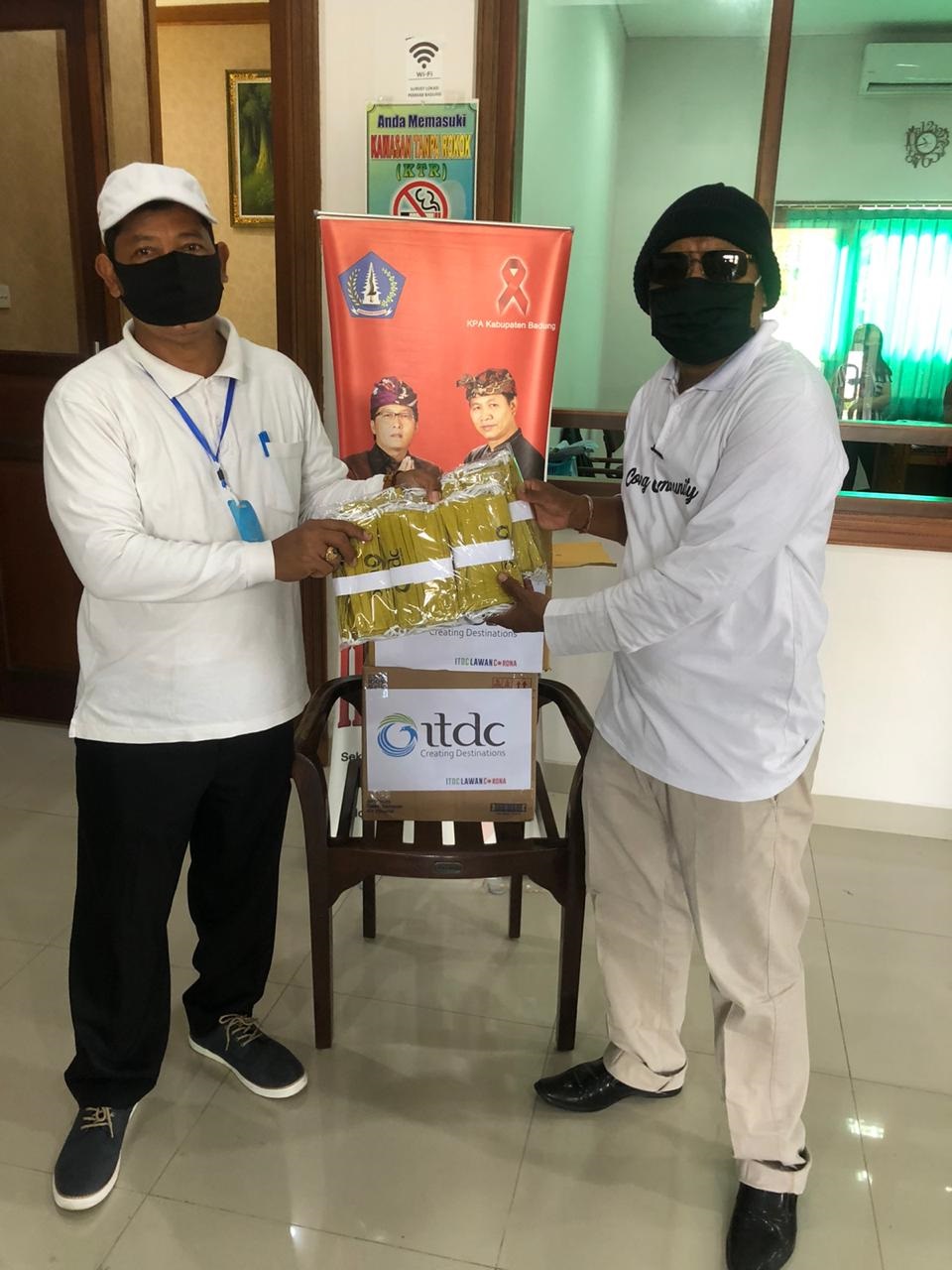 Penyerahan bantuan dilakukan oleh Managing Director The Nusa Dua I Gusti Ngurah Ardita kepada Ketua Tim SATGAS COVID-19 Kelurahan Benoa I Wayan Ambara Putra, bertempat di Kantor ITDC di Kawasan The Nusa Dua yang saat ini berfungsi juga sebagai Posko Satgas BUMN Antisipasi Covid-19 di Kabupaten Badung.  Bantuan wastafel portable dan 1950 masker kain berasal dari ITDC, sedangkan 300 masker kain merupakan bantuan dari salah satu tenant The Nusa Dua yaitu Kayu Manis Private Villas & Spa.