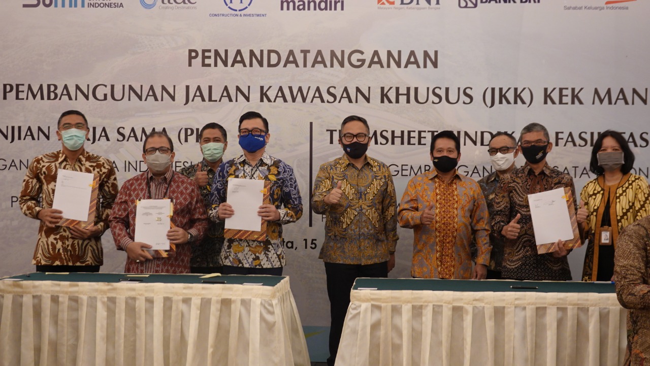 Penandatanganan PKS dilakukan oleh Direktur Utama ITDC Abdulbar M. Mansoer dan Direktur Utama PT PP Novel Arsyad dengan disaksikan oleh Wakil Menteri BUMN II Kartika Wirjoatmodjo, bertempat di Gedung Mandiri Club, Jakarta, Rabu (15/7/2020). PKS ini efektif berlaku mulai tanggal 15 Juli 2020.  Sementara Termsheet Fasilitas Sindikasi Perbankan ditandatangani oleh Farida Thamrin dan Teddy Y. Danas mewakili Bank Mandiri, Litasari Wahju W dan Rommel TP Sitompul mewakili BNI, S. Hernowo dan Hari Setiawan mewakili BRI, dan Sindhu Rahadian Ardita mewakili BTN.