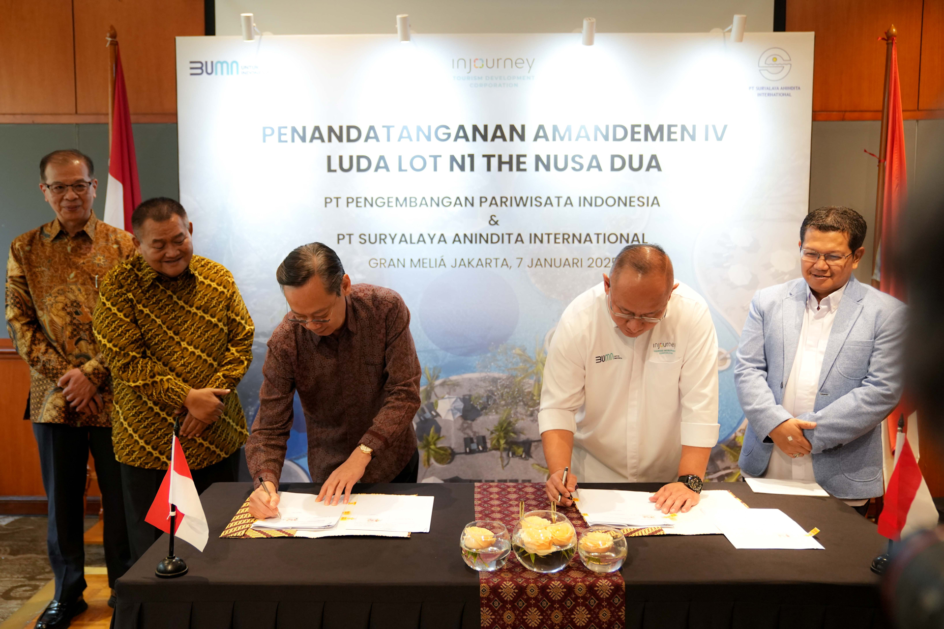 Jakarta, 7 Januari 2025 – PT Pengembangan Pariwisata Indonesia atau ITDC bersama PT Suryalaya Anindita International, pemilik dan pengelola Meliá Bali Hotel, secara resmi memperpanjang kerjasama Land Utilization & Land Development Agreement (LUDA) untuk Lot N1 di kawasan The Nusa Dua, Bali, hari ini Selasa, (7/1) di Hotel Gran Meliá, Jakarta.