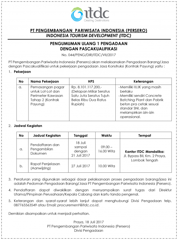 ANNOUNCEMENT 1 PROCUREMENT OF POST-QUALIFICATION