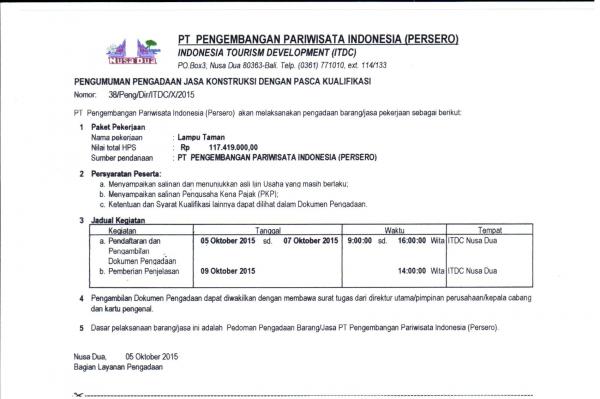 October 05, 2015 - completed Klik disini untuk ke halaman e-procurement