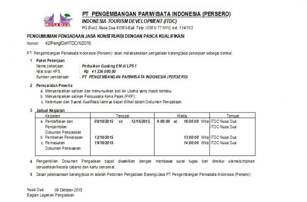 October 09, 2015 - completed Klik disini untuk ke halaman e-procurement