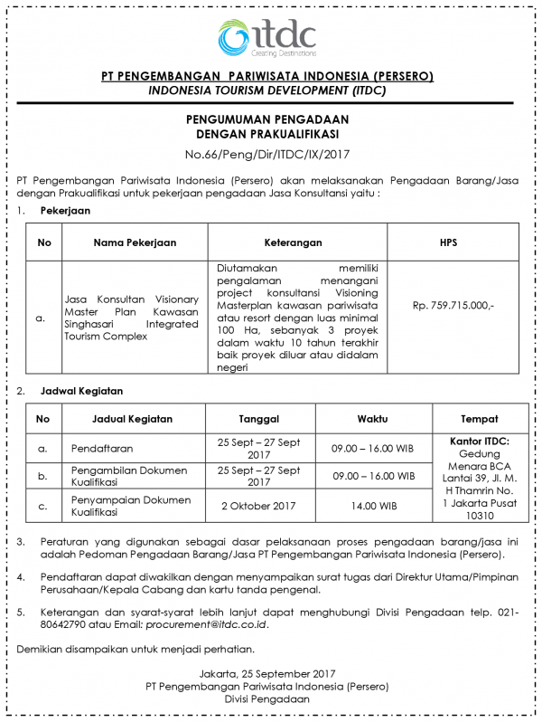 VISIONARY MASTER PLAN CONSULTAN SERVICES, SINGHASARI INTEGRATED TOURISM COMPLEX
