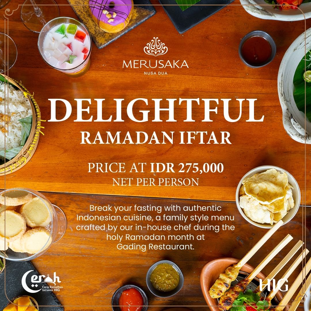 Delightful Ramadan IftarPrice at IDR 275,000 Net per personBreak your fasting with authentic Indonesian cuisine, a family style menu crafted by our in-house chef during the holy Ramadan month at Gading Restaurant