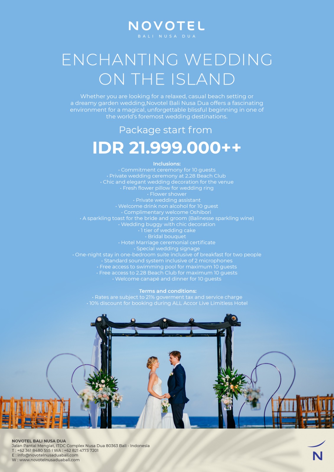 Whether you are looking for a relaxed, casual beach setting or a dreamy garden wedding, Novotel Bali Nusa Dua offers a fascinating environment for a magical, unforgettable blissful beginning in one of the world’s foremost wedding destinations.