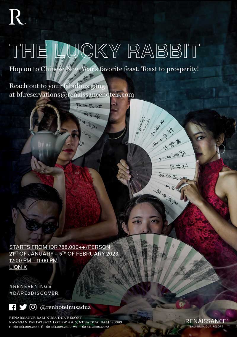 CELEBRATE LUNAR NEW YEARYEAR OF THE RABBIT AT MERUSAKA NUSA DUASTARTS FROM IDR 2.100.000 PER NIGHT FOR DELUXE ROOMTERMS & CONDITIONS- Minimum stay 2 nights- Booking period: immediately up to 15 January 2023 - Stay period: 19 January - 25 January 2023 INCLUSIONS- Daily breakfast for 2 adults & 2 kids under 6 years old - Chinese New Year Dinner with Barongsai performance on 21 January 2023 for 2 person- 1 time complimentary 2 scoop gelato- Discount 25% for any SPA Treatment- Discount 10% for F&B (Exclude In Room Dining) FOR INFORMATION AND RESERVATION:EMAIL STAY.MERUSAKA@MERUHOTELS.COM WHATSAPP +62 811-3895-552MERUSAKA.COM