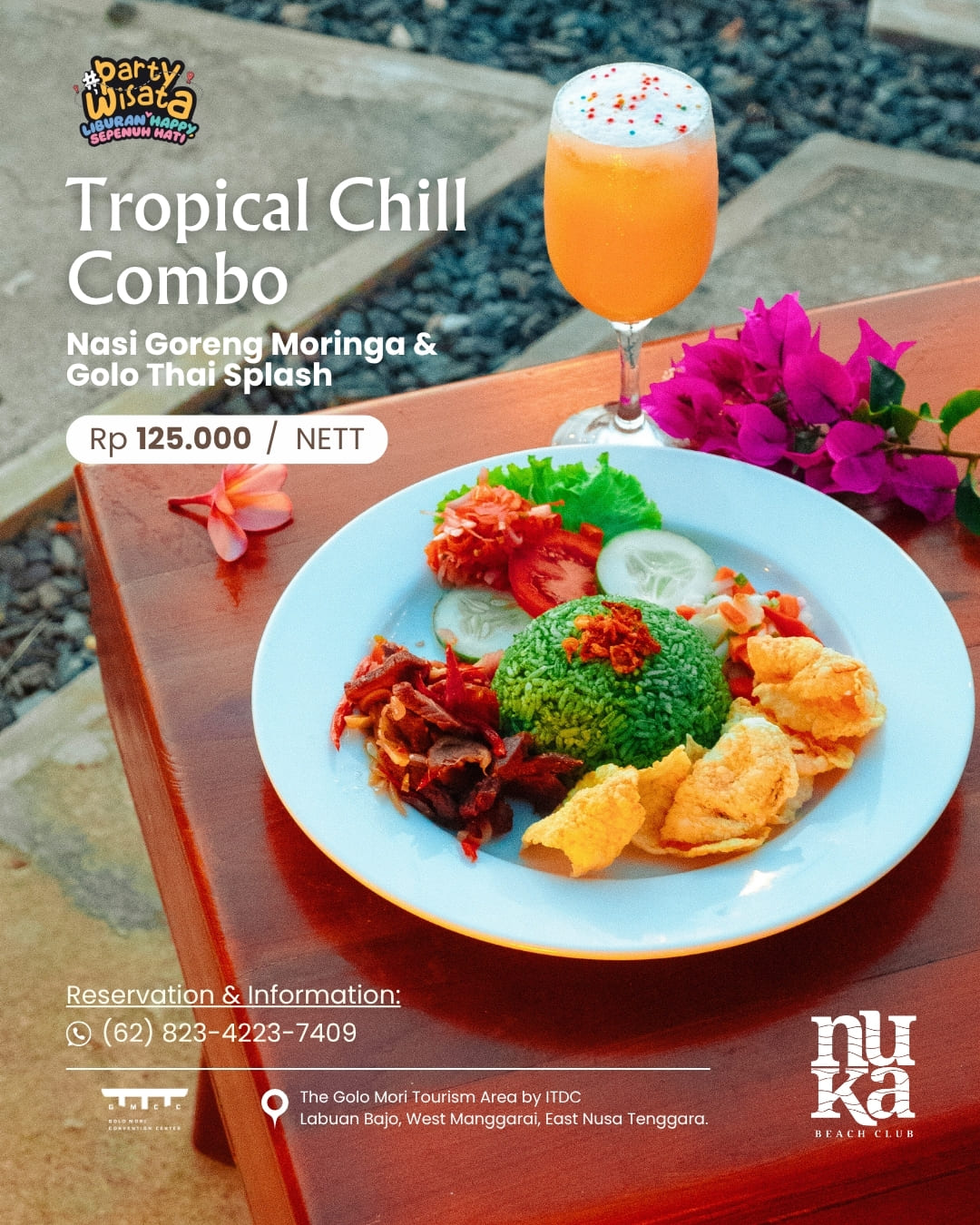 Nasi Goreng Moringa & Golo Thai SplashRp 125.000/ NETTReservation & Information:(62) 823-4223-7409The Golo Mori Tourism Area by ITDCLabuan Bajo, West Manggarai, East Nusa Tenggara.