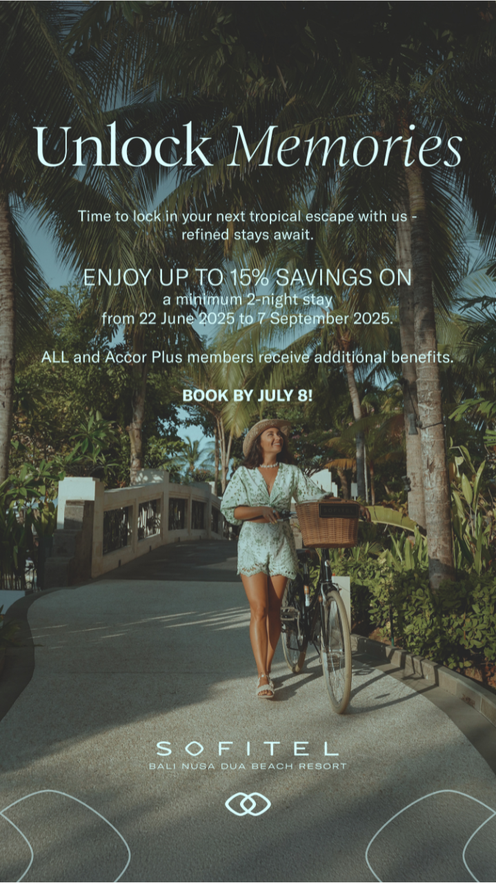 Buka Kenangan, Saatnya untuk menikmati liburan tropis Anda berikutnya bersama kami, penginapan mewah menanti Anda.NIKMATI HEMAT HINGGA 15% untuk menginap minimal 2 malammulai 22 Juni 2025 hingga 7 September 2025.Anggota ALL dan Accor Plus menerima manfaat tambahan.PESAN SEBELUM 8 JULI!